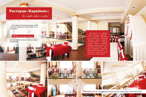 Гарантуємо приємний відпочинок і затишок у ресторані “Барвінок”,який доповнить нотки живої музики різноманіття страв української та європейської кухні,бездоганне обслуговуванння і просто чудовий настрій.