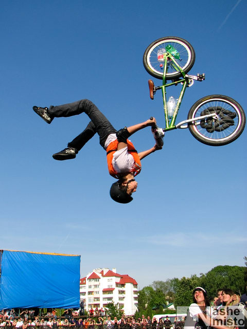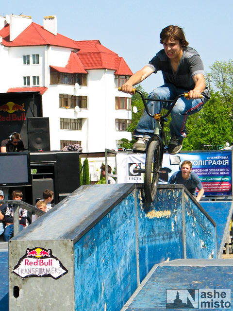 В рамках фестивалю пройшли змагання з дисциплін даунхіл, або швидкісний спуск на велосипеді (II етап кубку України з гірського велосипеду), скейтбординг, BMX, велотріал і лейкджампінг. Контести в дисциплінах скейтбординг і BMX відбулися у мобільному скейт-парку «Red Bull Transformers», який після місяця перебування в Івано-Франківську перемістився до Кривого Рогу. Довідка: «Red Bull Transformers» — соціальний проект, метою якого є розвиток культури скейтбордингу і BMX в Україні. В рамках проекту скейт-парк із 2008 року мандрує містами України, даючи можливість нашим спортсменам удосконалювати навики свого катання в єдиному в Україні скейт-парку європейського рівня. Змагання з даунхілу (в категоріях любитель і професіонал) відбулися 9 травня на трасі «Ху із ху» на горі за селом Вовчинець. Погода посприяла райдерам — траса була сухою. Участь взяли понад 40 учасників з Івано-Франківська і багатьох інших міст України (Чернівці, Тернопіль, Хмельницький, Львів, Київ, Калуш, Яремче, Коломия, Здолбунів, Жидачів). Найкращий час показали чернівецькі райдери. Загальні результати: Професіонали (чоловіки) Змагання зі скейтбордингу та BMX відбулися 9–10 травня, в останні дні перебування парку-трансформера в Івано-Франківську поблизу міського озера. У змаганнях зі скейтбордингу взяли участь 22 учасника, у BMX-контесті — 24. Серед них — жителі Івано-Франківська, Калуша, Львова, Чернівців, Рівного. Незважаючи на пекуче сонце, райдери все-таки змогли показати високий рівень катання і покорити суддів та глядачів своїми неймовірними трюками. Імена кращих: Скейтбординг Змагання з велотріалу пройшли 9 травня на двох секторах, на площі біля міського озера. За помилки у проходженні дистанції тріаліст отримував штрафні очки; за 5 штрафних очок знімався з дистанції. Досить швидко визначилися імена переможців: Завершили фестиваль змагання у найвидовищнішій дисципліні — лейкджампінгу. Подія зібрала величезну кількість глядачів біля міського озера. Райдери стрибали в озеро, виконуючи в польоті складні трюки. Серед учасників була лише одна представниця прекрасної статі — Настя «Shaggy» Лобойко. Кожен учасник виконав по три стрибки в озеро; оцінював стрибунів переможець BMX-контесту Андрій Павликівський. На щастя, обійшлося без особливих неприємностей, не рахуючи пробитого об виліт колеса та потонулого велосипеда. |