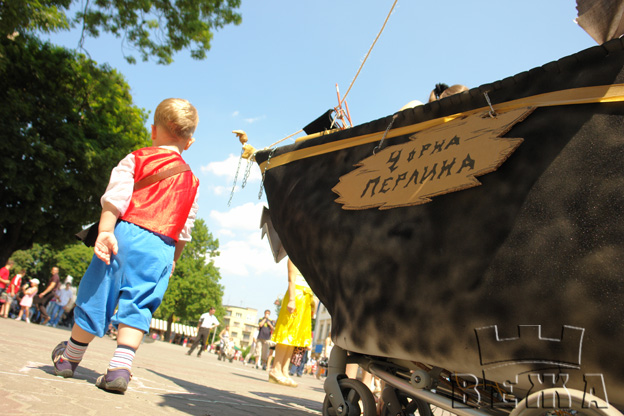 Піратський корабель, квітник для дюймовочки, повітряна куля Незнайки та потяг. Кілька нехитрих дизайнерських прийомів і саме на таке диво перетворюється звичайна дитяча коляска. Маленький Олександр Вершинін - івано-франківський "Джек Горобець". Нині він капітан "Чорної перлини". Для повноти образу і малюк, і його мама перевдягалися у костюми морських розбійників. А візочок перетворився на справжнісінький корабель: із щоглою, вітрилами та піратською символікою. Щоб змінити до непізнаваності традиційний екіпаж, не досипали ночей. Три дні працювали усією родиною, розповідає матуся Мар’яна. Ідеї для створення цікавих образів батькам здебільшого підказували самі малюки. У однорічної Ані - це "Незнайка на повітряній кулі" - із улюбленої книги братика. Створювали візочка усього за добу і з підручних матеріалів. Для родини - це сімейний відпочинок, зізнається Віра Сем’янчук. Подібні дійства – не лише демонструють індивідуальність малюків, а й зміцнюють родину. Саме тому з кожним роком парад візочків стає все популярнішим, - переконує організатор Віталій Яворський. Парад дитячих візочків це радше свято, ніж змагання. Тому - без подарунку не залишився жоден з учасників. А вже наступного року це дійство планують провести у районних центрах. А гала-парад відбудеться традиційно в Івано-Франківську. Саша Вершинін він же Джек Горобець на своїй «Чорній Перлині» здобув перше місце. Візочок-потяг, пані Людмили, зайняв друге місце. А третє місце здобула доня Наталі Белей, справжня Дюймовочка. Колектив ТРК «Вежа» щиро вітає всіх переможців!
