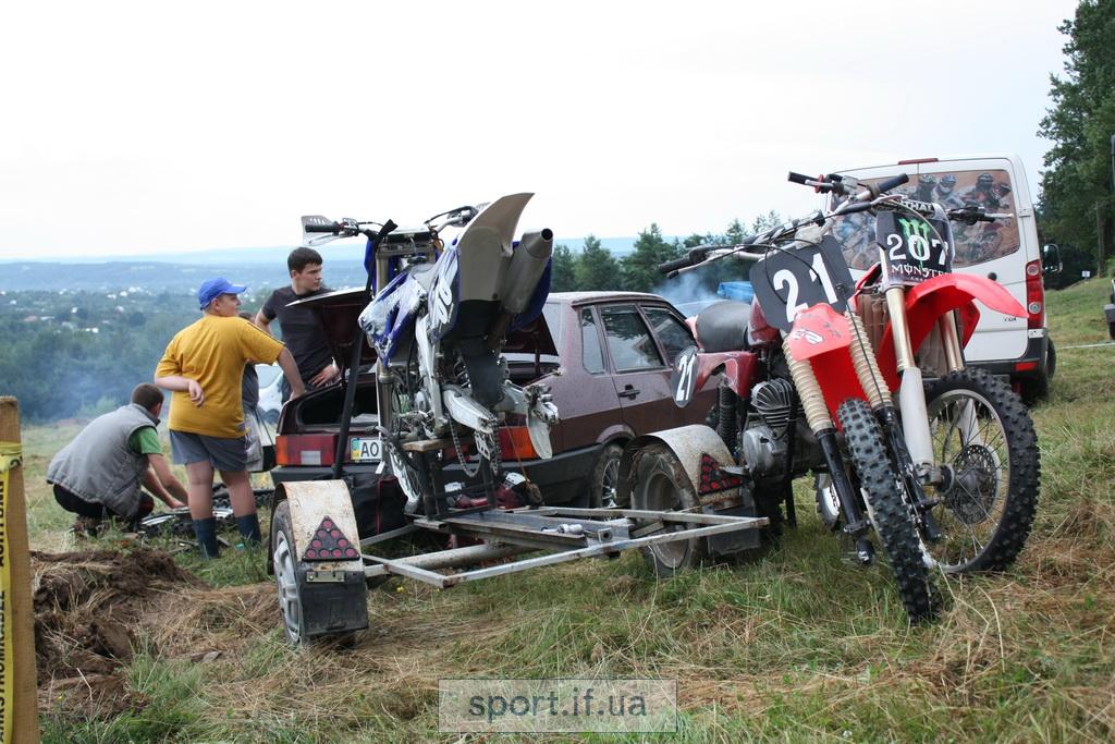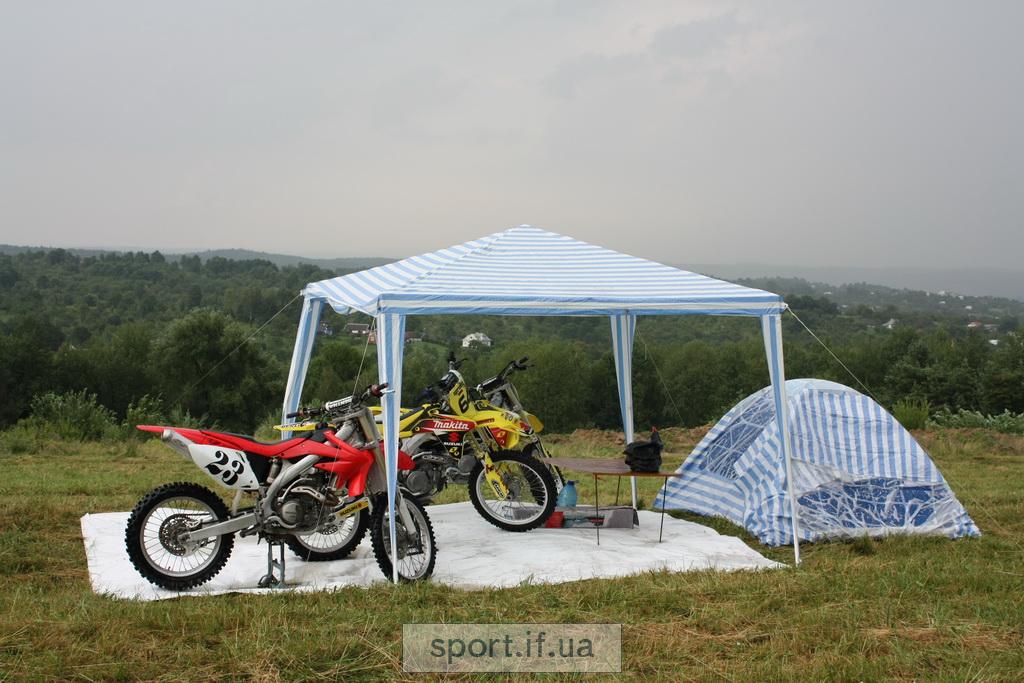 У селі Вербовець, що на Косівщині, на вихідних відбувся останній, п'ятий, етап цьогорічного Кубка Західного регіону України з мотокросу. До вашої уваги фотозвіт з першого дня гонки. Цього дня, у суботу, приїжджали учасники турніру, вони розміщувалися у наметовому містечку. Відбувалися також вільні тренування, які затрималися через доволі сильний дощ.